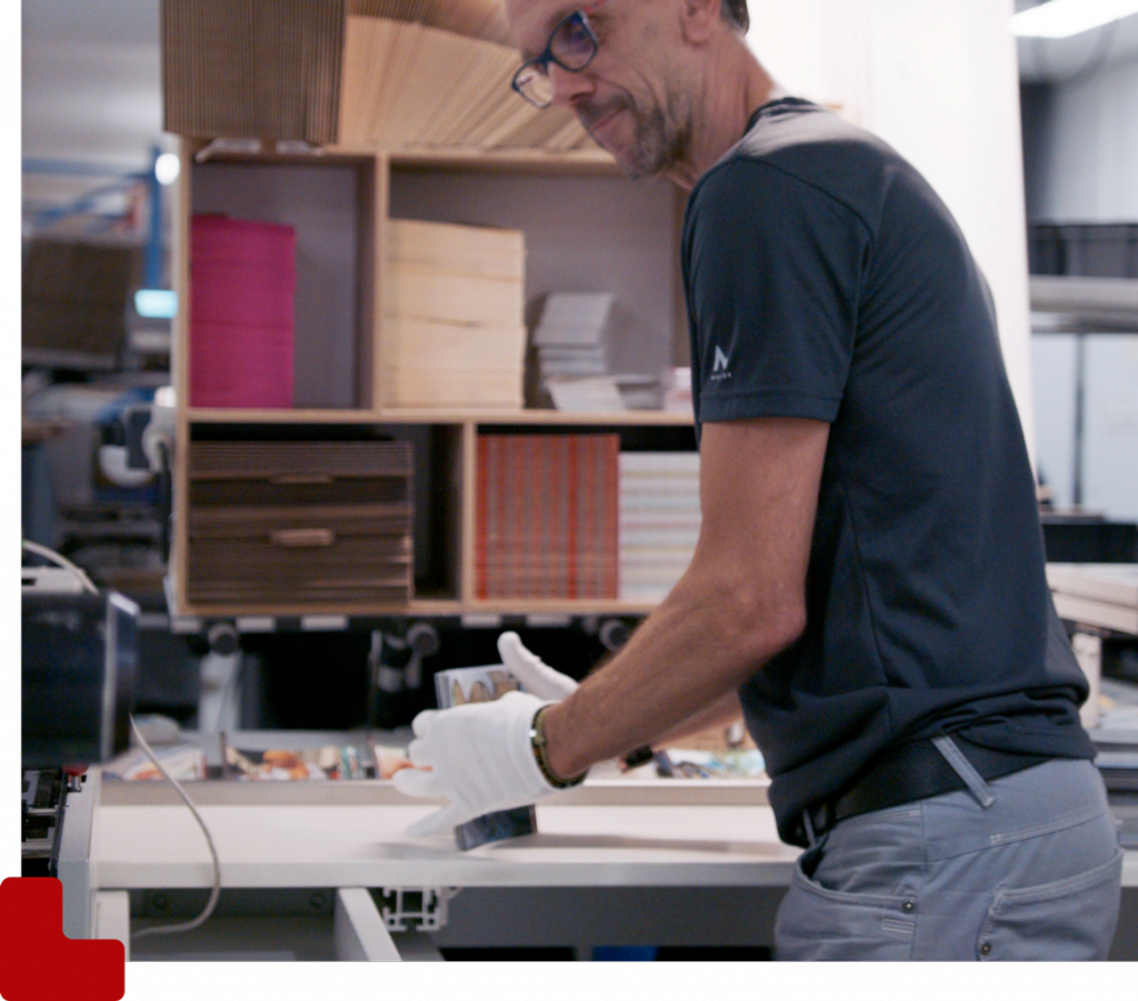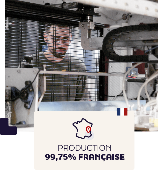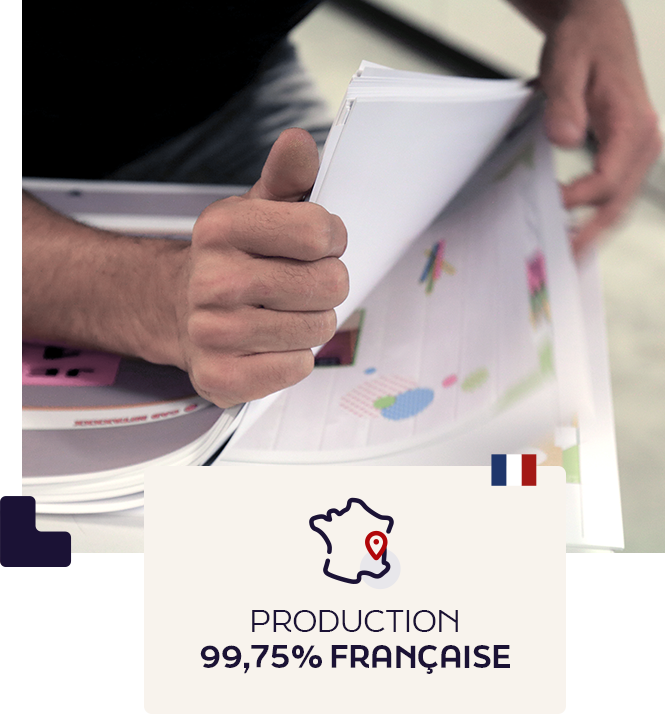 Tout cela, imprimé en France. En 2022, 99.75 % de nos produits ont été imprimés et façonnés dans notre atelier à Saint Egrève. C’est ici que tout se passe pour nos produits fabriqués en France. Cette proximité entre les équipes génère un atout logistique, permettant une qualité de service et d’écoute auprès de tous nos clients, avec un délai de livraison minimum. Et c’est toujours le cas aujourd’hui.